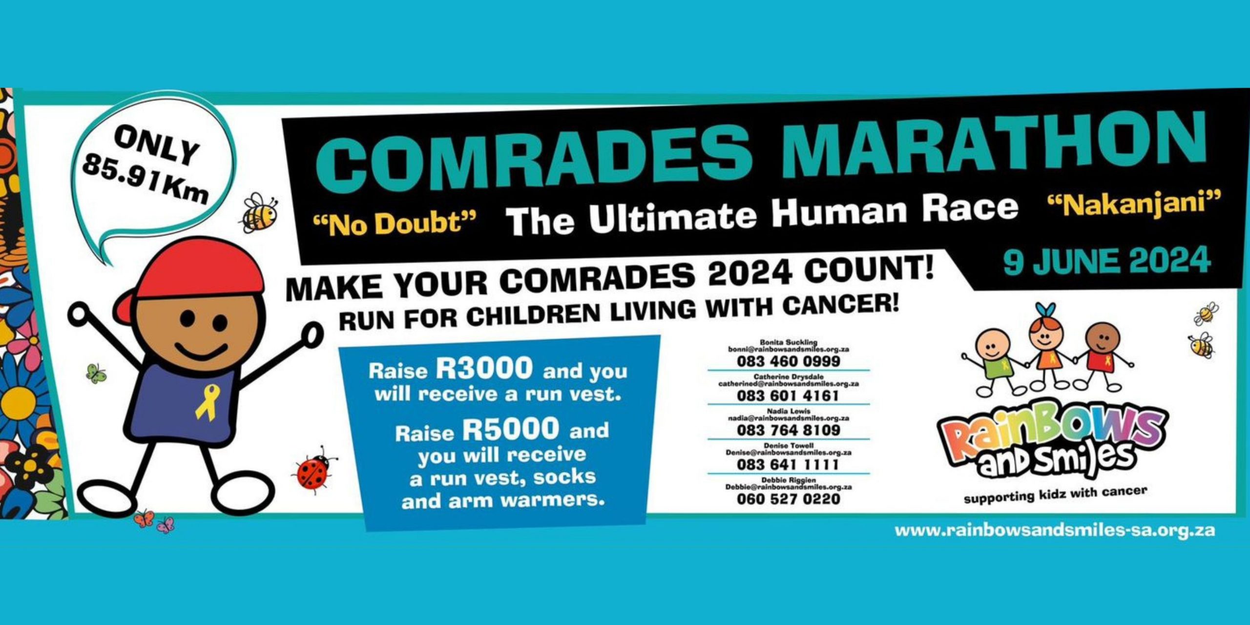 Rainbows and Smiles, a non-profit organization dedicated to bringing joy and hope to children facing life-threatening illnesses, is gearing up for the 97th edition of the world’s most renowned ultramarathon, the Comrades Marathon. This iconic race spans 90 kilometres, starting in Durban and ending in Pietermaritzburg on Sunday, 9 June 2024.
